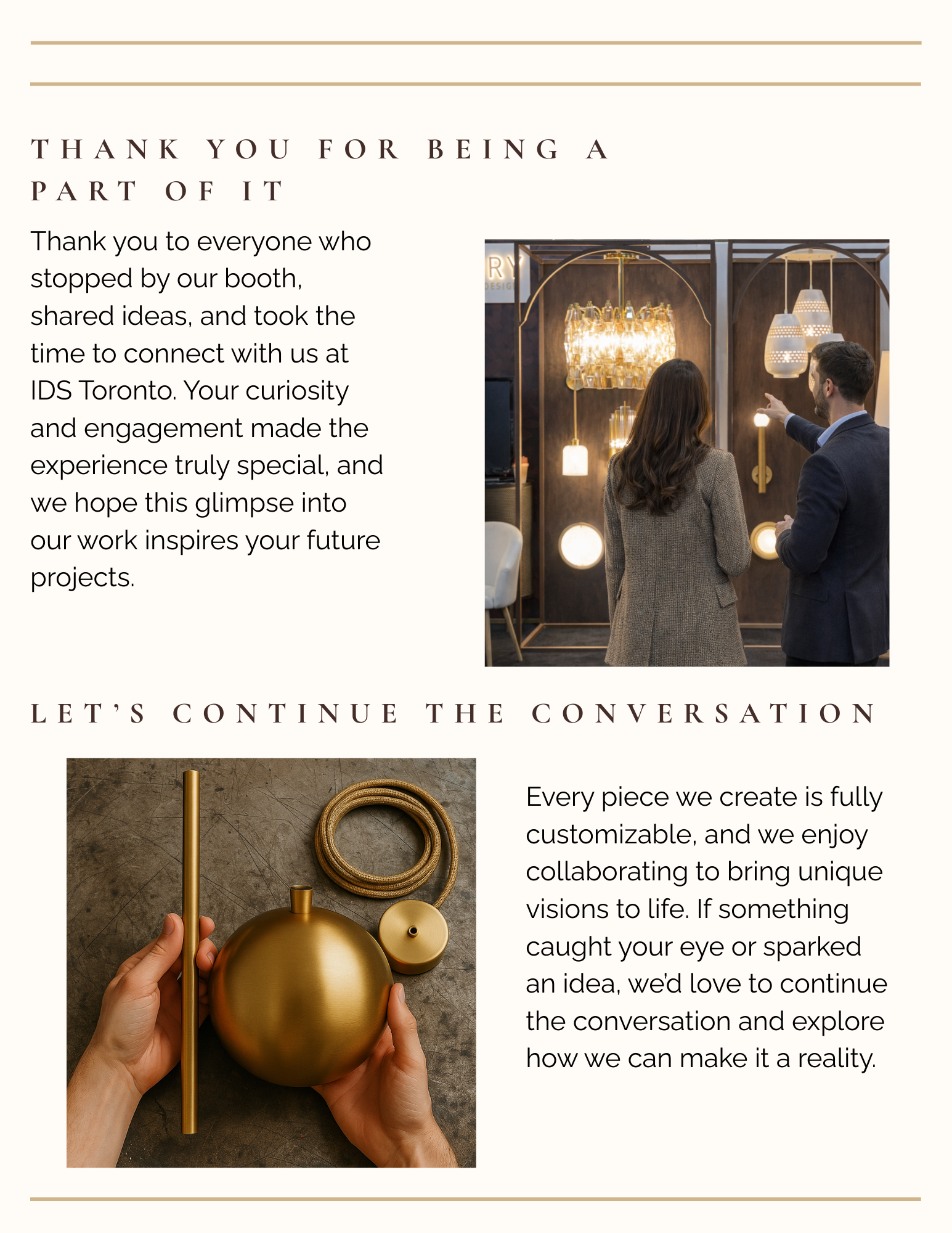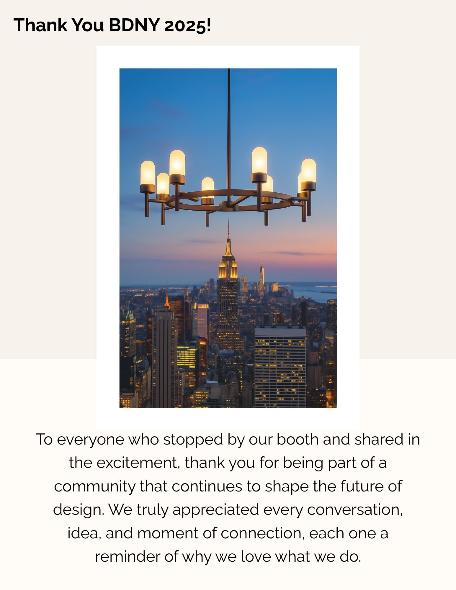 We truly enjoyed meeting each of you and appreciate you taking the time to connect with us. It was a pleasure speaking with so many designers, architects, industry professionals, owners, purchasers, and lighting experts who share our passion for exceptional design.